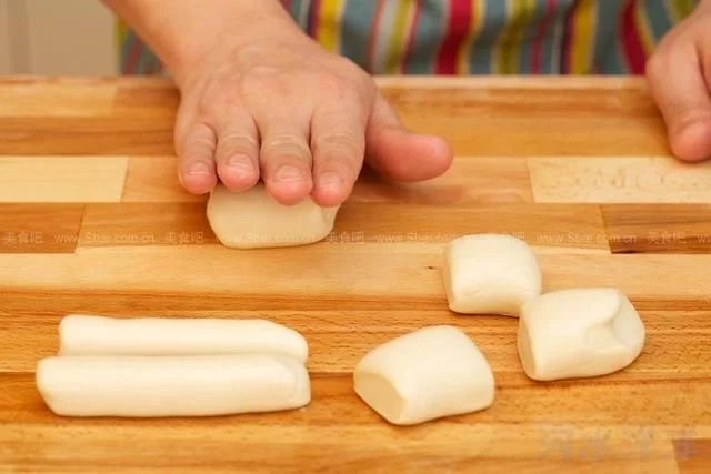 3. 面團在涂抹上油的案板上繼續揉搓好后分成小段, 再在每小段的表面上都涂抹一層油;
