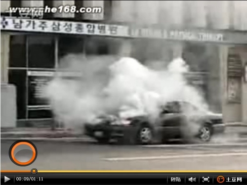 韓國街頭汽車(chē)發(fā)動(dòng)機自燃