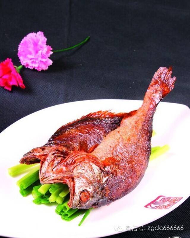 香蔥60克洗凈后切成長(cháng)段,擺入盤(pán)底,放上一條黃魚(yú)即可走菜。
