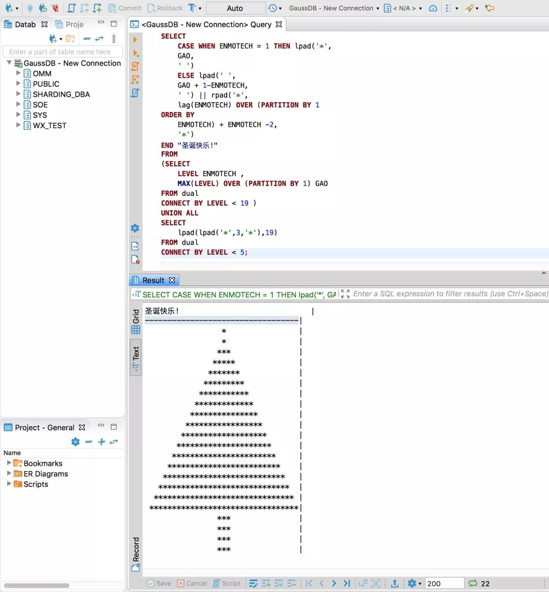 然后就可以用 GaussDB T (也就是 GaussDB 100)繪制圣誕樹(shù)了,純國產(chǎn),更喜慶。話(huà)不多說(shuō),上圖: